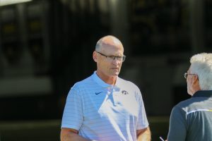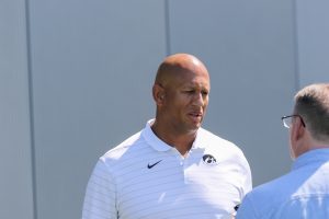 Iowa Football running back Tyler Goodson poses for a photo during the team’s annual media day on Aug. 13, 2021 at Kinnick Stadium in Iowa City. (Photo – Rob Howe/HawkFanatic.com)Iowa Football freshmen receivers (From L-R) Keagan Johnson, Arland Bruce IV and Brody Brecht pose for a photo during the team’s annual media day on Aug. 13, 2021 at Kinnick Stadium in Iowa City. (Photo – Rob Howe/HawkFanatic.com)Iowa Football receiver Tyrone Tracy Jr. poses for a photo during the team’s annual media day on Aug. 13, 2021 at Kinnick Stadium in Iowa City. (Photo – Rob Howe/HawkFanatic.com)Iowa Football tight ends Elijah Yelverton (left) and Josiah Miamen pose for a photo during the team’s annual media day on Aug. 13, 2021 at Kinnick Stadium in Iowa City. (Photo – Rob Howe/HawkFanatic.com)Iowa Football tight ends Luke Lachey (left) and Sam LaPorta pose for a photo during the team’s annual media day on Aug. 13, 2021 at Kinnick Stadium in Iowa City. (Photo – Rob Howe/HawkFanatic.com)Iowa Football defensive backs (from L-R) Dane Belton, Kaevon Merriweather, Matt Hankins, Jack Koerner and Riley Moss preparing to pose for a photo during the team’s annual media day on Aug. 13, 2021 at Kinnick Stadium in Iowa City. (Photo – Rob Howe/HawkFanatic.com)Iowa Football defensive linemen Yahya Black (left) and Noah Shannon pose for a photo during the team’s annual media day on Aug. 13, 2021 at Kinnick Stadium in Iowa City. (Photo – Rob Howe/HawkFanatic.com)Iowa Football linebackers Seth Benson (left) and Jack Campbell pose for a photo during the team’s annual media day on Aug. 13, 2021 at Kinnick Stadium in Iowa City. (Photo – Rob Howe/HawkFanatic.com)Iowa Football’s Cooper DeJean during the team’s annual media day on Aug. 13, 2021 at Kinnick Stadium in Iowa City. (Photo – Rob Howe/HawkFanatic.com)Iowa Football’s Terry Roberts poses during the team’s annual media day on Aug. 13, 2021 at Kinnick Stadium in Iowa City. (Photo – Rob Howe/HawkFanatic.com)Iowa Football assistant Kelvin Bell meets with the press during the team’s annual media day on Aug. 13, 2021 at Kinnick Stadium in Iowa City. (Photo – Rob Howe/HawkFanatic.com)Iowa Football assistant Phil Parker meets with the press during the team’s annual media day on Aug. 13, 2021 at Kinnick Stadium in Iowa City. (Photo – Rob Howe/HawkeyeNation.com)Iowa Football assistant Ken O’Keefe meets with the press during the team’s annual media day on Aug. 13, 2021 at Kinnick Stadium in Iowa City. (Photo – Rob Howe/HawkeyeNation.com)Iowa Football assistant Ladell Betts meets with the press during the team’s annual media day on Aug. 13, 2021 at Kinnick Stadium in Iowa City. (Photo – Rob Howe/HawkFanatic.com)Iowa Football assistant Brian Ferentz meets with the press during the team’s annual media day on Aug. 13, 2021 at Kinnick Stadium in Iowa City. (Photo – Rob Howe/HawkeyeNation.com)Iowa Football assistant George Barnett meets with the press during the team’s annual media day on Aug. 13, 2021 at Kinnick Stadium in Iowa City. (Photo – Rob Howe/HawkeyeNation.com)Iowa Football assistant LeVar Woods meets with the press during the team’s annual media day on Aug. 13, 2021 at Kinnick Stadium in Iowa City. (Photo – Rob Howe/HawkeyeNation.com)Iowa Football assistant LeVar Woods meets with the press during the team’s annual media day on Aug. 13, 2021 at Kinnick Stadium in Iowa City. (Photo – Rob Howe/HawkFanatic.com)Iowa Football assistant Jay Niemann meets with the press during the team’s annual media day on Aug. 13, 2021 at Kinnick Stadium in Iowa City. (Photo – Rob Howe/HawkeyeNation.com)Iowa Football assistant Seth Wallace meets with the press during the team’s annual media day on Aug. 13, 2021 at Kinnick Stadium in Iowa City. (Photo – Rob Howe/HawkeyeNation.com)Iowa Football coach Kirk Ferentz speaks with the crowd at the team’s annual media day on August 13, 2021 at Kinnick Stadium in Iowa City. (Photo – Rob Howe/HawkFanatic.com)Iowa defensive tackle Yahya Black poses for a photo during the team’s annual media day on Aug. 13, 2021 at Kinnick Stadium in Iowa City. (Photo – Rob Howe/HawkFanatic.com)