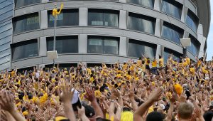 Iowa is also unique from a tradition standpoint, including how the team takes the field just prior to kick-off with the players locking arms and jogging slowly in a group as a show of unity. This tradition, which is called the Swarm, was started by Ferentz’s predecessor, Hayden Fry.