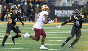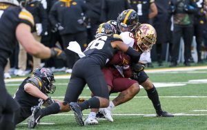IOWA CITY, Iowa – Iowa Football improved to 8-2 and kept its Big Ten West Division championship hopes alive Saturday with a 27-22 victory against Minnesota here at Kinnick Stadium. The Hawkeyes kept the Floyd of Rosedale Trophy for the seventh year in a row.