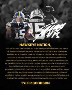 IOWA CITY, Iowa – Junior running back Tyler Goodson has played his last game with the Iowa football team.