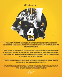 “With that being said, I want to officially announce that I am declaring for the 2022 NFL draft. Thank you Hawkeye Nation for the support. Go Hawks!