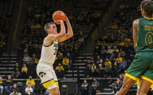 “It’s unbelievable,” Sandfort said of the green light that Fran McCaffery gives his players as shooters. “The same thing with my high school coach, the main reason I picked (Iowa) is because of that green light that I’ve seen Fran give his previous players and growing up watching the program.