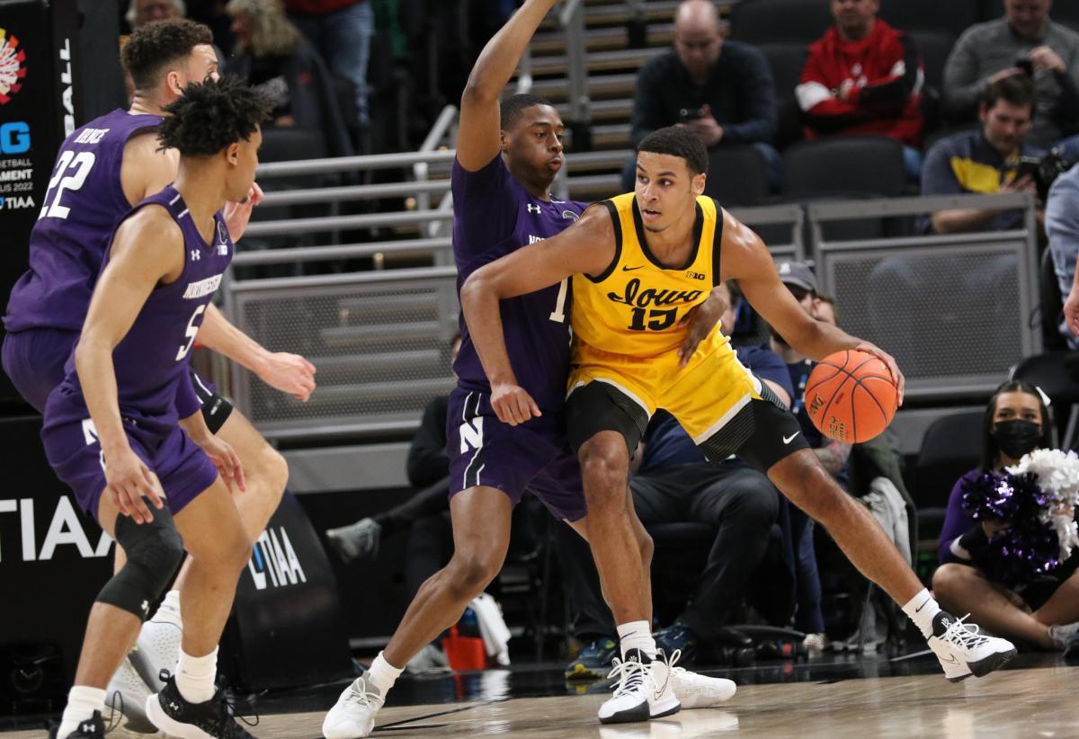 INDIANAPOLIS – No. 24 and fifth-seeded Iowa advanced to the quarterfinals of the Big Ten Tournament with a 112-76 win against Northwestern Thursday here at Gainbridge Fieldhouse. The Hawkeyes improved to 23-9 this season.