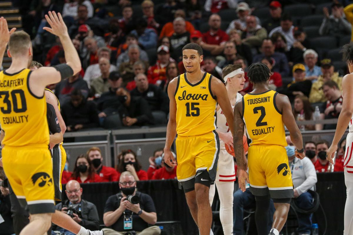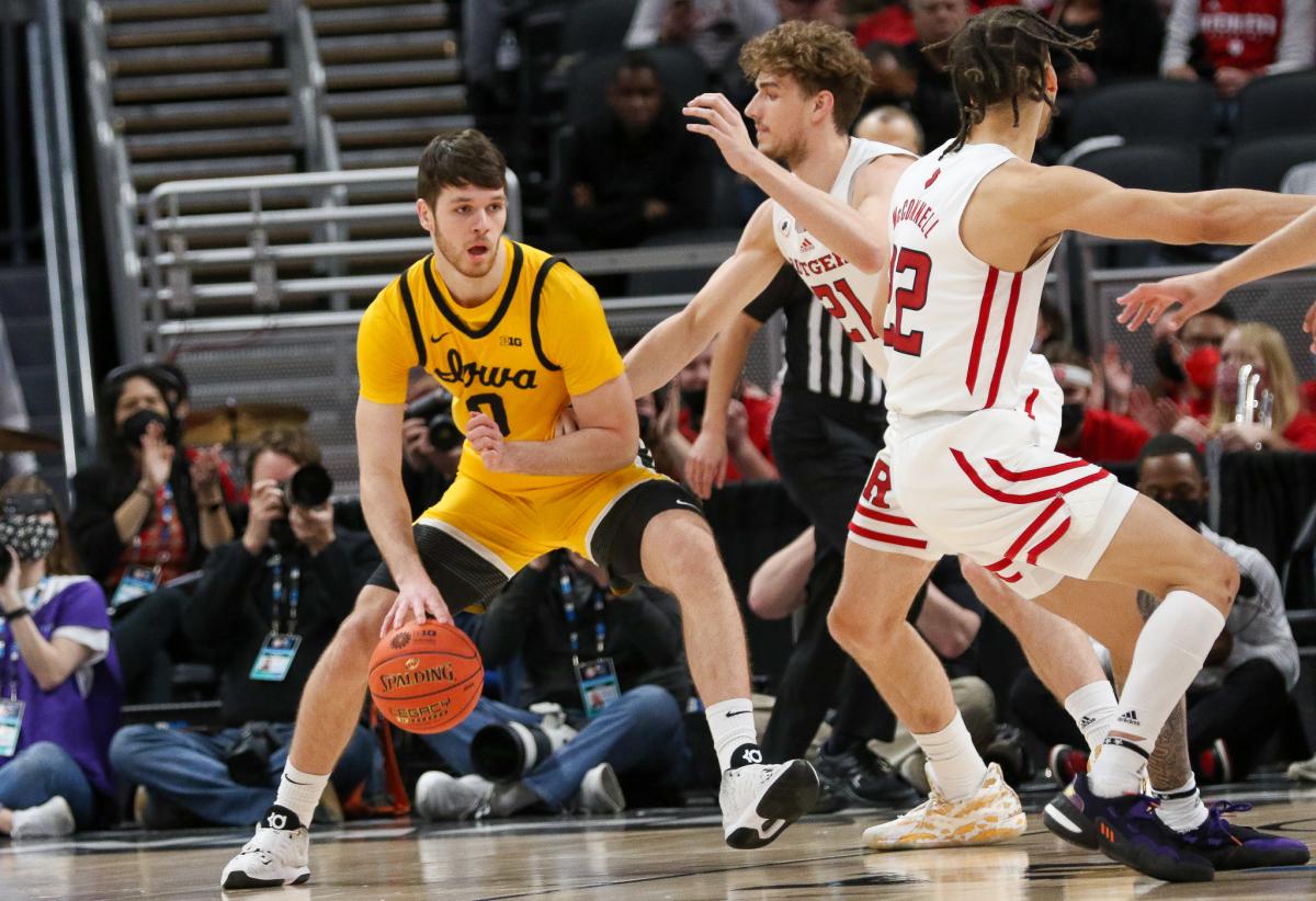INDIANAPOLIS – No. 24 and fifth-seeded Iowa avenged a regular-season loss to Rutgers with an 84-74 victory Friday afternoon in the Big Ten Tournament quarterfinals here at Gainbridge Fieldhouse. The Scarlet Knights were the No. 4 seed.