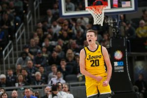 Sophomore forward Keegan Murray led the charge as usual in Sunday’s game with 19 points and 11 rebounds, but his supporting cast also rose to the occasion in spectacular fashion, including freshman Payton Sandfort, who came off the bench to score 10 points.