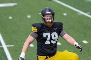 Iowa head coach Kirk Ferentz said after Saturday’s practice that he saw the offensive line make progress this spring, and he singled out Jack Plumb and Mason Richman for helping to lead the way.