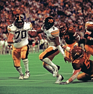 You name it and the 2002 Iowa football team had it, including Banks’ dynamic skills as a dual-threat quarterback, a rock-solid offensive line and defensive line, a 1,000-yard rusher in Fred Russell, arguably the best kicker in the nation in Nate Kaeding, and of course, the great Bob Sanders terrorizing opponents as a bone-crushing safety.
