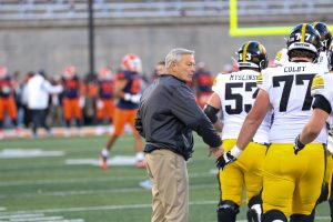 Kirk Ferentz has a serious problem that just keeps getting worse in that the situation on offense is beyond ridiculous, the latest evidence being Saturday’s 9-6 loss at Illinois in which the Fighting Illini, who are coached by former Hawkeye nose guard Bret Bielema, won despite committing three turnovers, and despite losing their starting quarterback to an injury late in the first quarter.