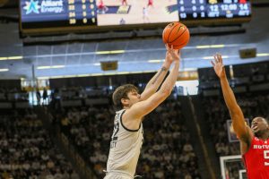 Patrick McCaffery made all three of his shots from 3-point range in Sunday’s victory, and seeing the first one go in the basket brought the fans to their feet and made his father happy.