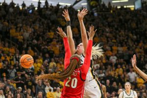 Four Iowa starters score in double figures in 74-66 victory at sold out Carver-Hawkeye Arena