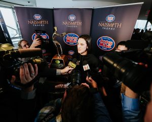 “The Naismith Trophy represents the pinnacle of achievement in college basketball, and it is a great honor to congratulate Caitlin,” said the Club’s executive director Eric Oberman. “Her sheer dominance in today’s women’s college basketball game is undeniably awe-inspiring, and we are very proud to recognize her remarkable accomplishments this season.”