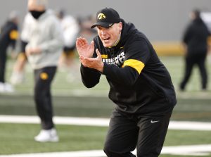 Iowa offensive coordinator Brian Ferentz, who is Kirk Ferentz’s son, also has experience with coaching the offensive line.