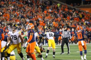 Kickoffs do not require any particular adjustment for the Hawks kicker. “With our kickoff team I just focus on crushing the ball. My normal kick will usually move a little bit to the left, my power side. But, if we need to place the ball to the right, I can do that, too, with just a little less distance.” With Stevens leg and Iowa’s pursuit to the ball Hawkeye opponents only averaged 16.94 yards per kickoff return, setting up the opposition’s offense with a long field to go.