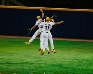 Iowa scored two runs in the eight inning on a RBI single by Brayden Frazier, followed by a perfectly executed bunt on a squeeze play by catcher Cade Moss that scored another run.