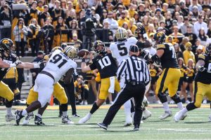 Iowa entered Saturday’s game with just three sacks, which was the fewest among FBS teams.