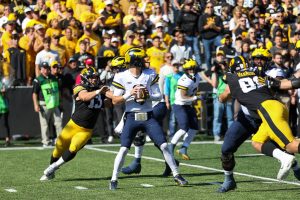 Junior J.J. McCarthy, a former five-star recruit, now starts at quarterback for Michigan and has performed at a very high level, while his predecessor at Michigan, Cade McNamara, now plays quarterback for Iowa, though, he is injured and won’t play in Saturday’s game.
