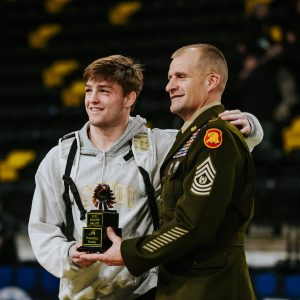 Unattached freshman Gabe Arnold won the championship at his first Solider Salute in similar fashion, hoisting #24 Lenox Wolak (Columbia) airborne before returning him to the mat for a, 4-1, victory in extra time.