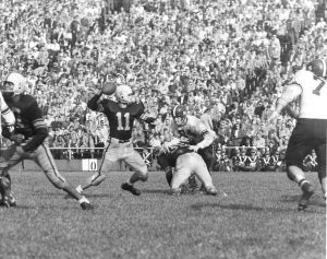 He led Iowa to its first Rose Bowl win following the 1956 regular season and he played professionally in Canada.