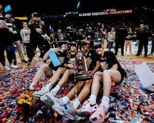 ALBANY, N.Y. – It’s hard to believe now, after sinking nine 3-point shots and finishing with 41 points, that Caitlin Clark came into the Elite 8 game against LSU in a bit of a shooting slump from behind the arc.