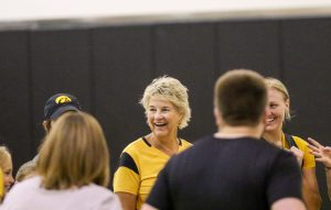 Bluder attended this past Tuesday’s practice at the Iowa practice facility, and then joined the team at mid-court in a circle at the conclusion of practice. Meeting in a circle is a tradition that Bluder started at Iowa and that Jensen plans to continue.