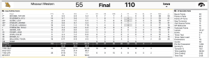 All eleven Hawkeyes that played in the first half saw minutes in the third as well. They outscored Missouri Western 27-16 in the quarter and made five of their last six shots.