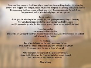 “After I complete my degree at the University of Iowa, I have decided to enter the transfer portal as a grad student, but I will always be a Hawkeye at heart,” Mulvey said.