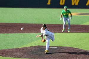 7. Cade Obermueller, junior, baseball: The Iowa City native earned third-team All-America honors after going 5-3 with a 3.02 ERA in 15 starts this past season. He posted five quality starts and fanned 117 batters over 83.1 innings. His 117 strikeouts ranks second all-time in program history for strikeouts in a season. He also led the Big Ten and ranked 18th in the nation in strikeouts per nine innings (12.83).