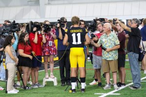 The spotlight shined brightly on Gronowski during Iowa’s annual media day event on Friday, just like it did last year and the year before when Cade McNamara was the No. 1 quarterback after having transferred into the program from Michigan.